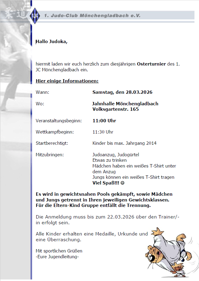 Anmeldung Osterturnier des 1. JC Mönchengladbach